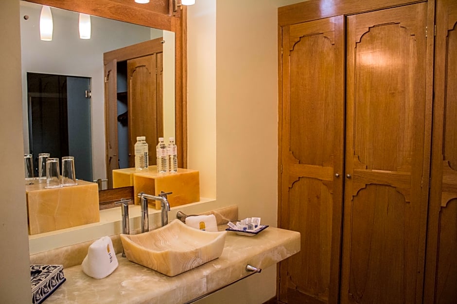 This suite comes with a queen-size bed. It offers views of the inner courtyard of the hotel.